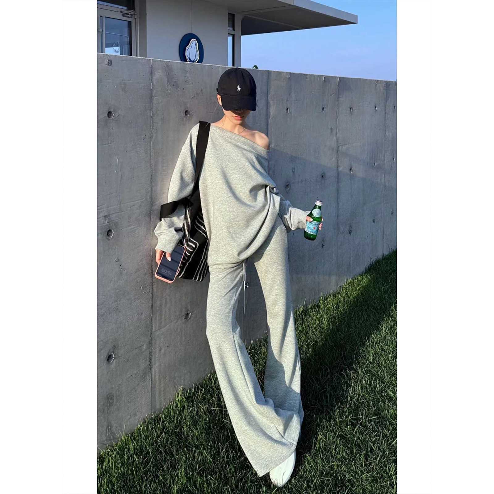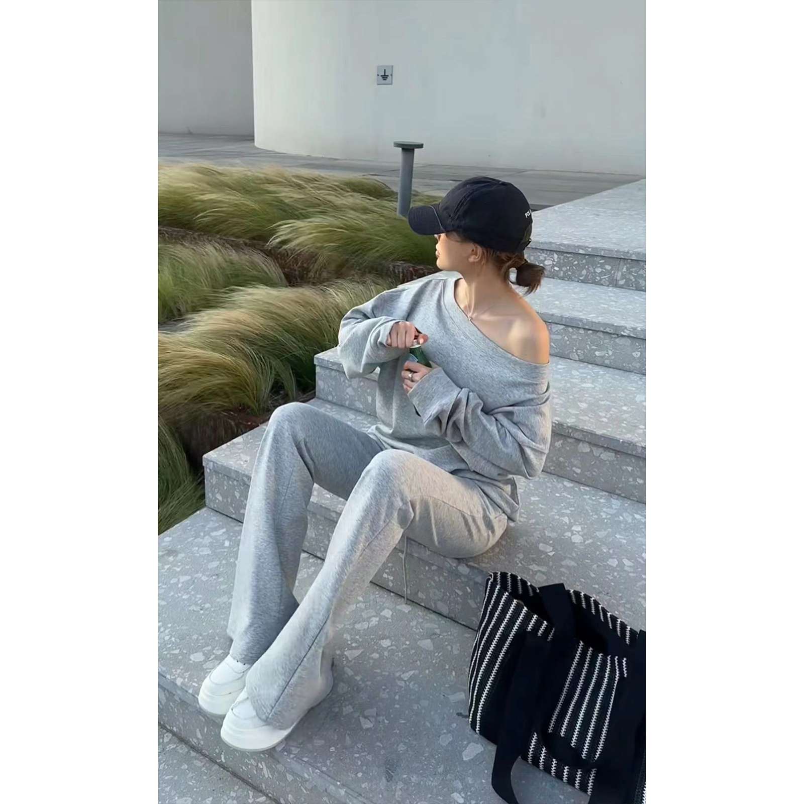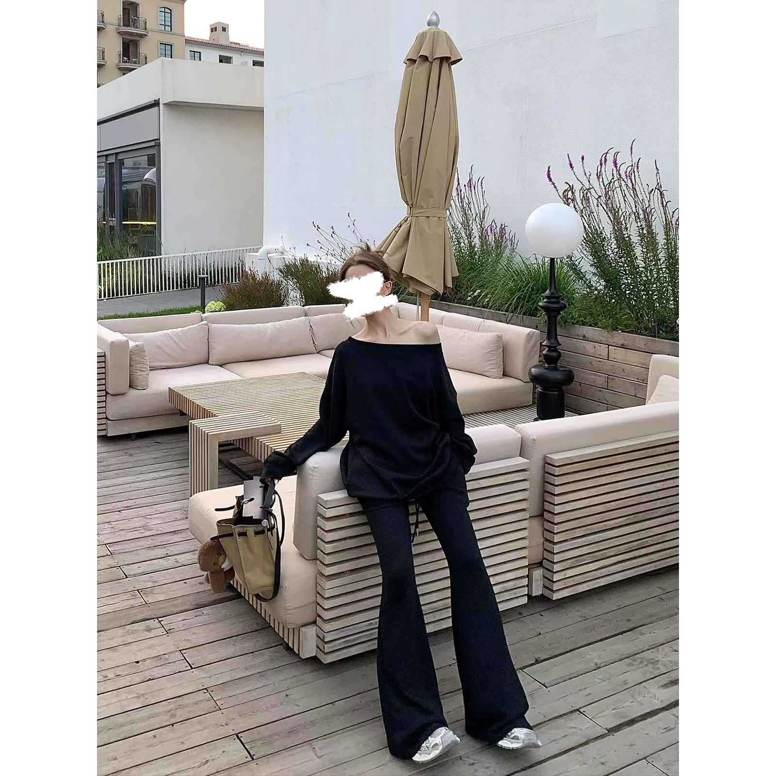 Autumn New Fashion Black Long-Sleeved T-Shirt Blouse Simple Sister Temperament Trousers Two Sets