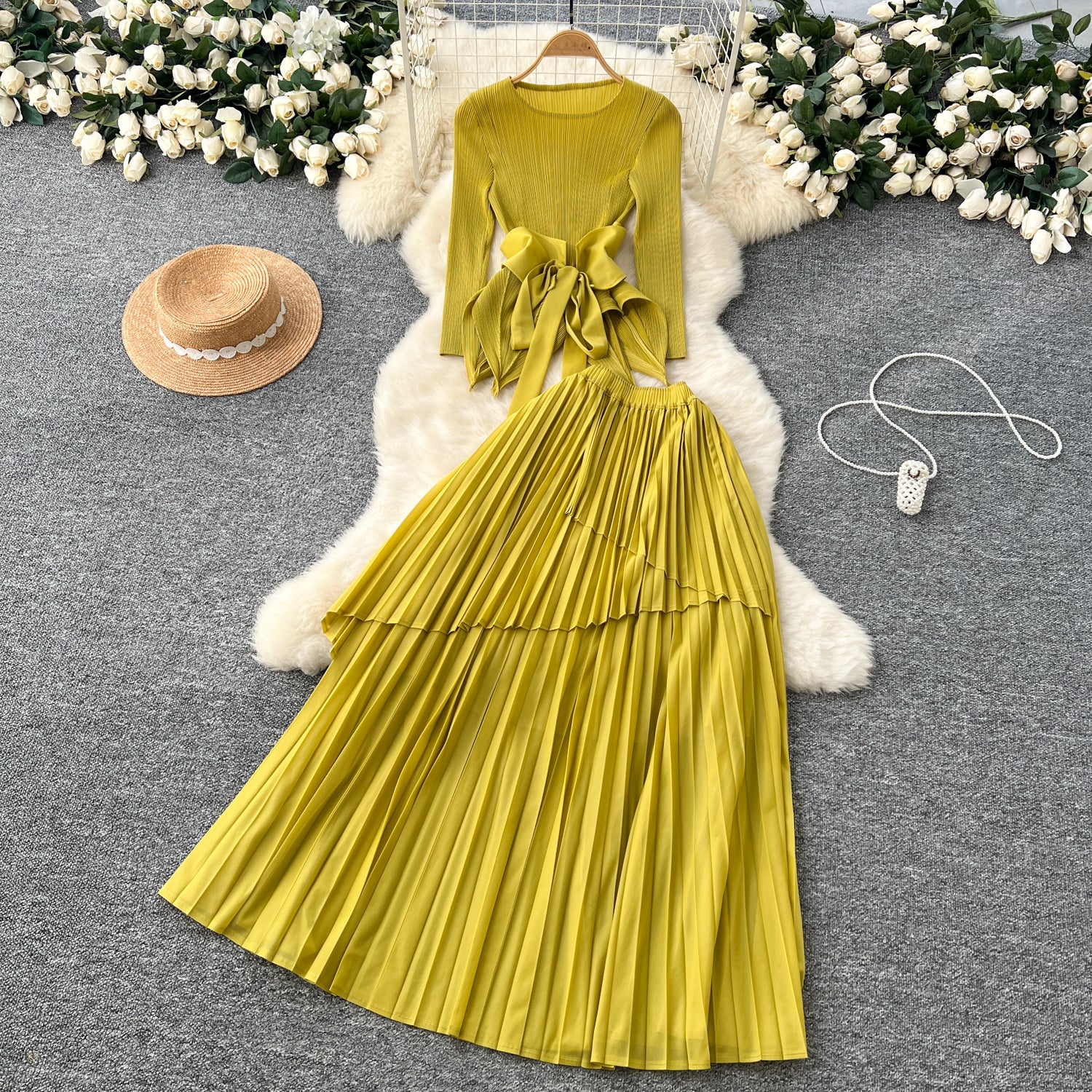 Tiktok Robe Skirt Coat Women's Explosive Middle East Turkey Solid Color Big-Size Cardigan 2 Sets