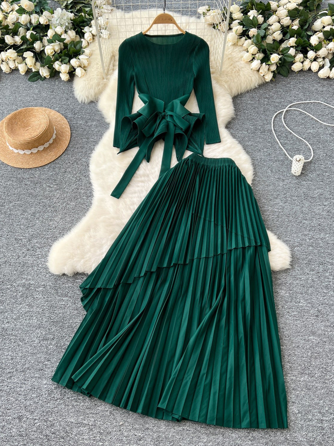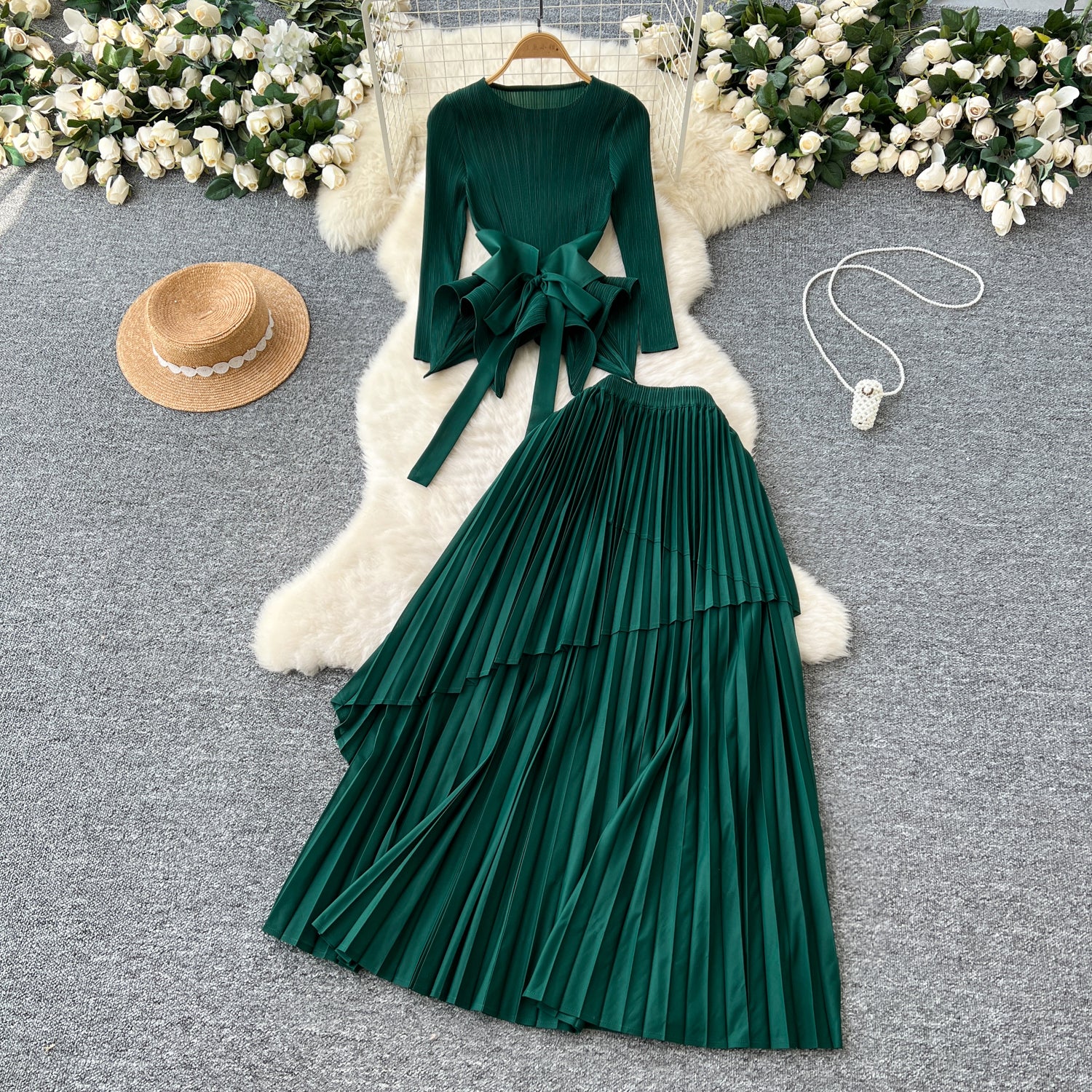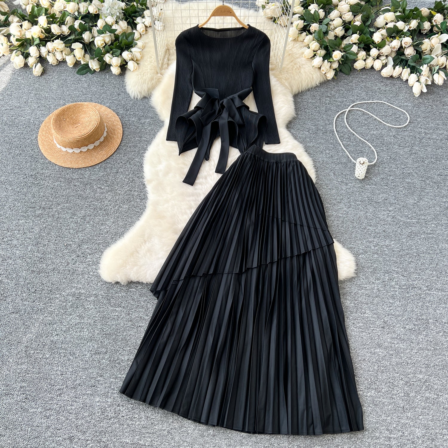 Design Sense T-Shirt With Irregular Hem Pressure Folding Blouse High-Waisted Half-Body Skirt