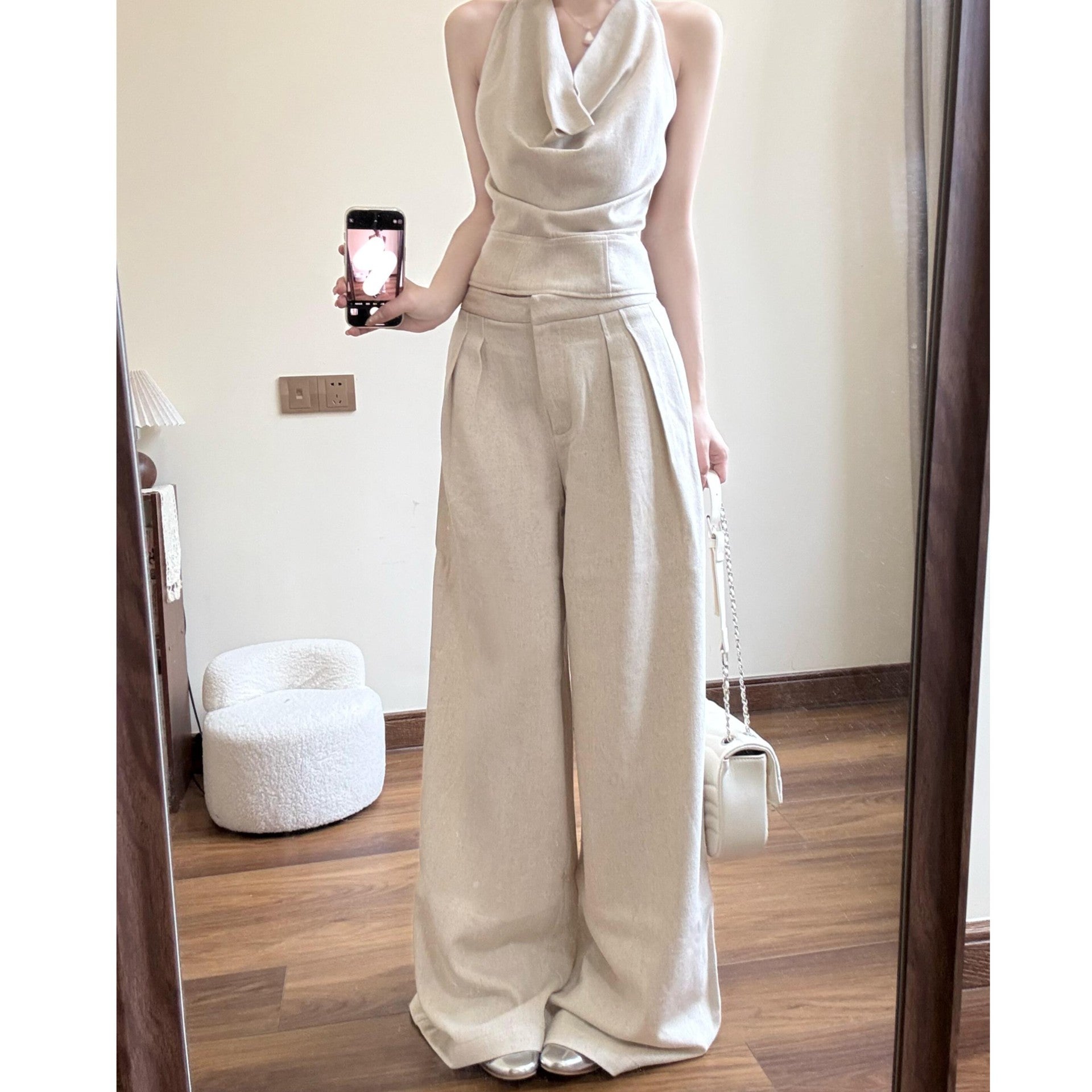 Hang Neck Collar Vest Temperament High-End Blouse Broad Leg Slack Feel To Wear Suit