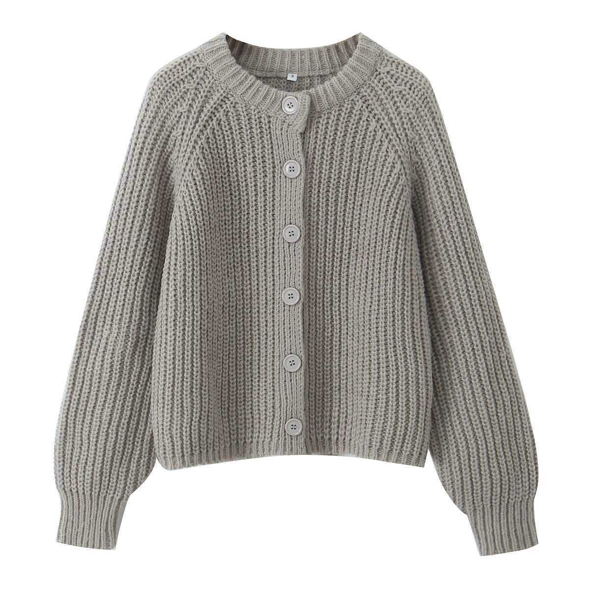 Autumn/Winter 2025 New Women's Solid-Color Casual Fashion Coarse Knit Long-Sleeved Sweater Cardigan Jacket