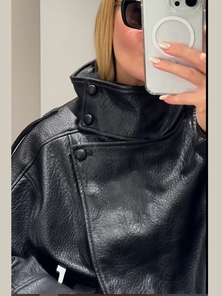 Autumn And Winter 2025 Fashion New Women's Pu Leather Jacket Jacket Locomotive Long-Sleeved Leather Coat Women