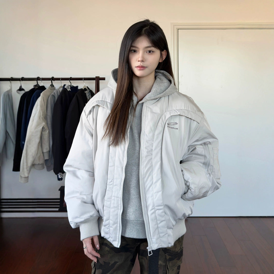 Deconstructing Curved Flying Cotton Jacket Boxy Loose Warm Cotton Coat Men And Women The Same Fried Street Clothes