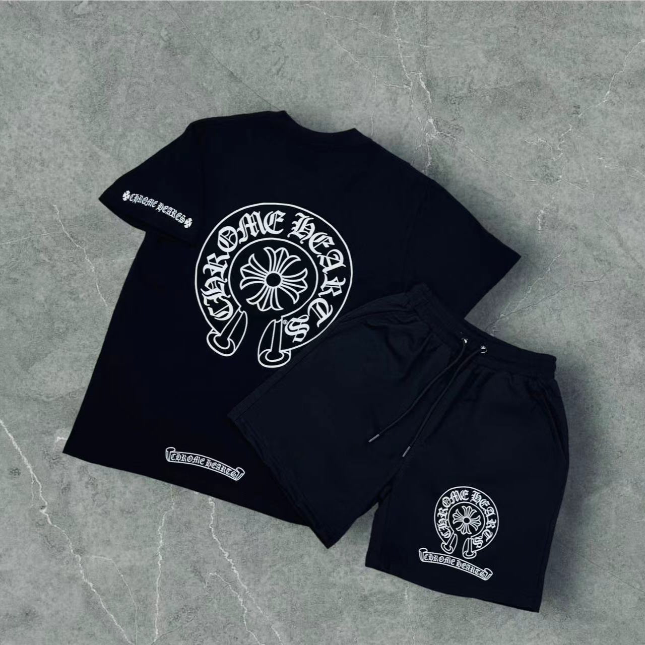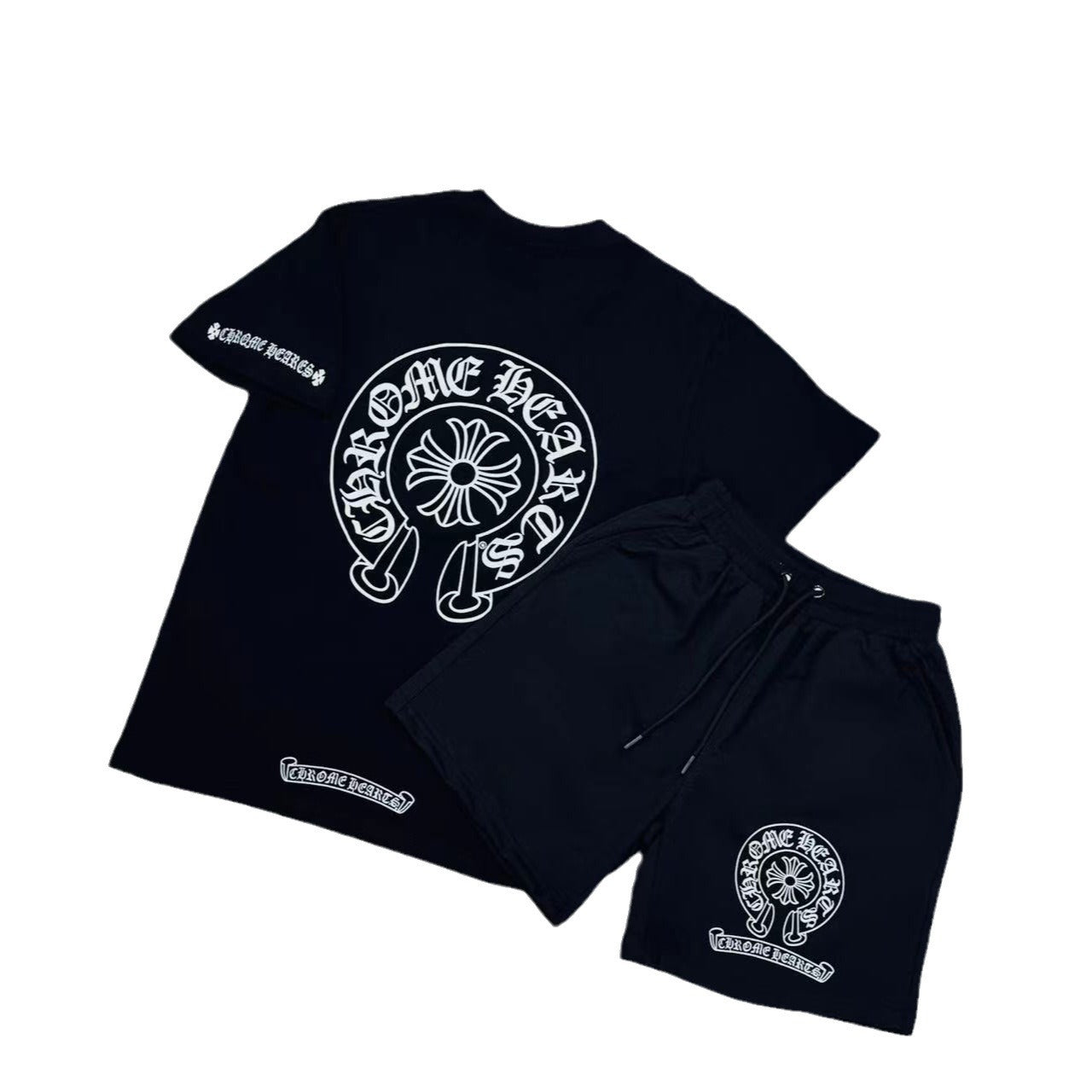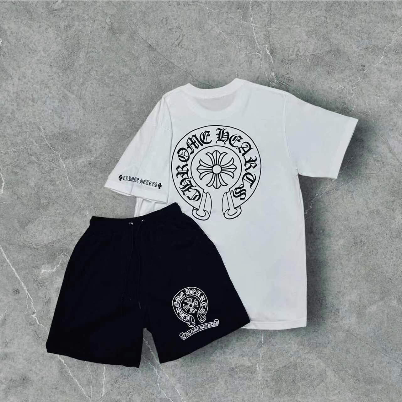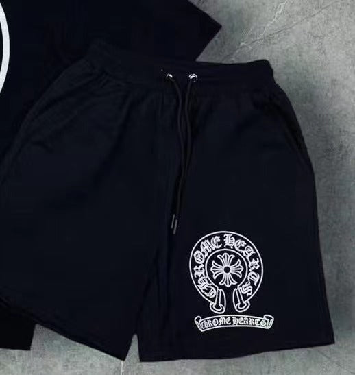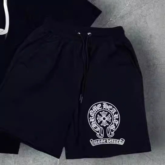 T-Shirt Trendy Retro Print Round-Neck Short-Sleeved Men's Loose Cotton Free-Fitting Hiphop Pants Couple Suit