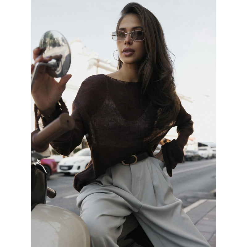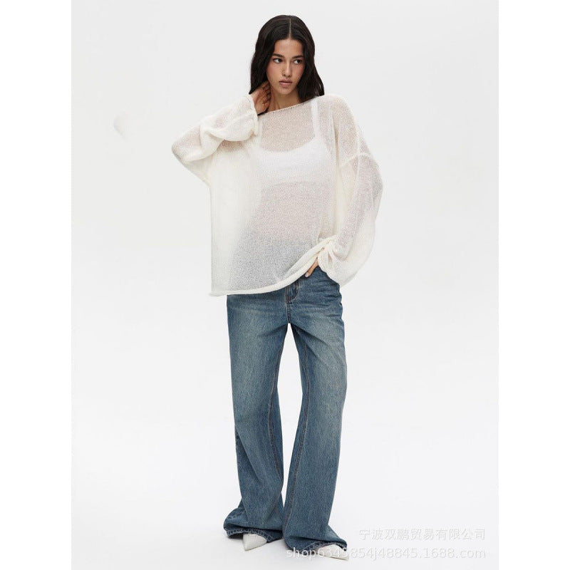 2025 Spring Summer Hollow Sweater Women In Wind Loose Knitted Long-Sleeved Cover Ice Cream Fashion