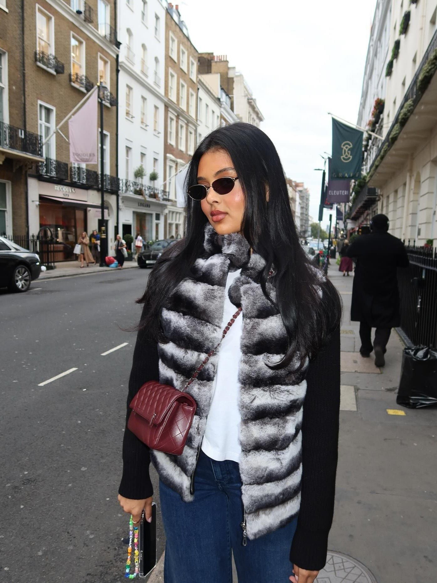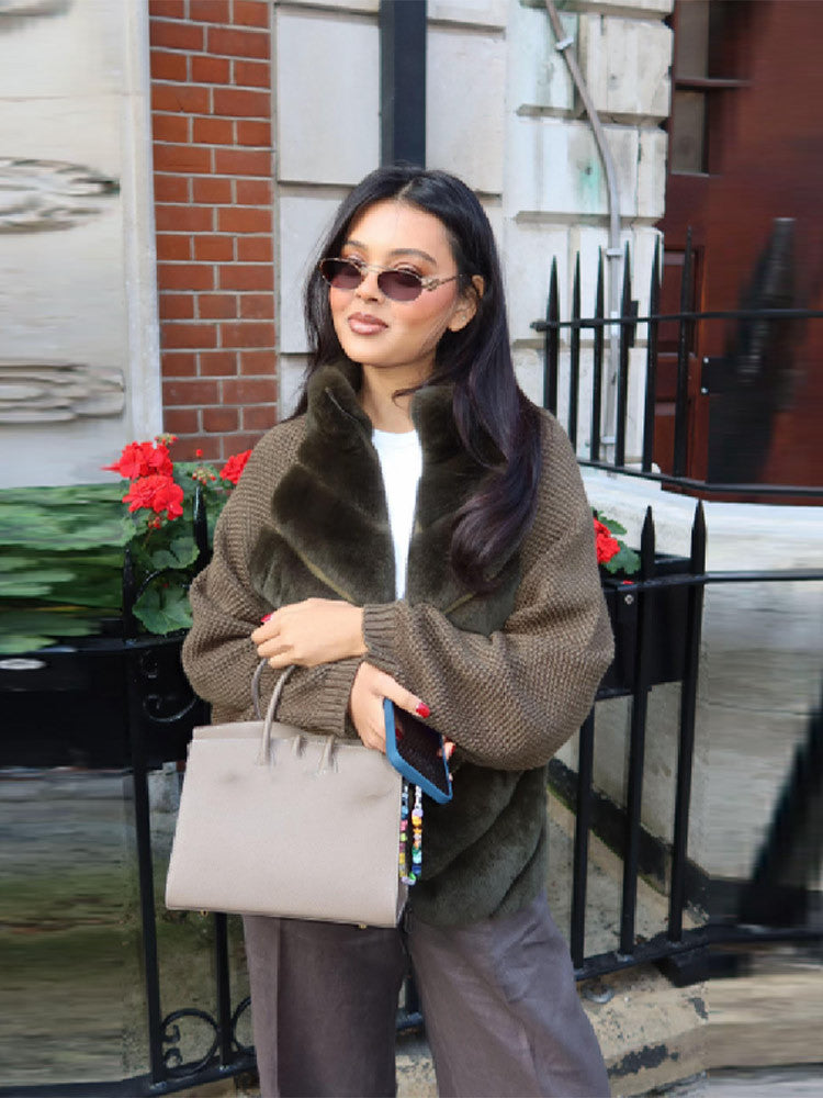 2025 Autumn And Winter New Women's Loose Long Sleeve Splicing Colliding Color Thick Fur Coat Women