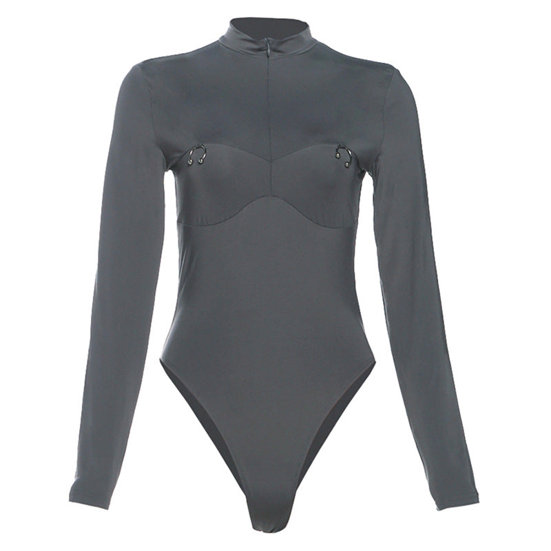 2025 Autumn And Winter New Women's Sexy Round Collar Tight-Sleeved Metal Decorative Conjoined