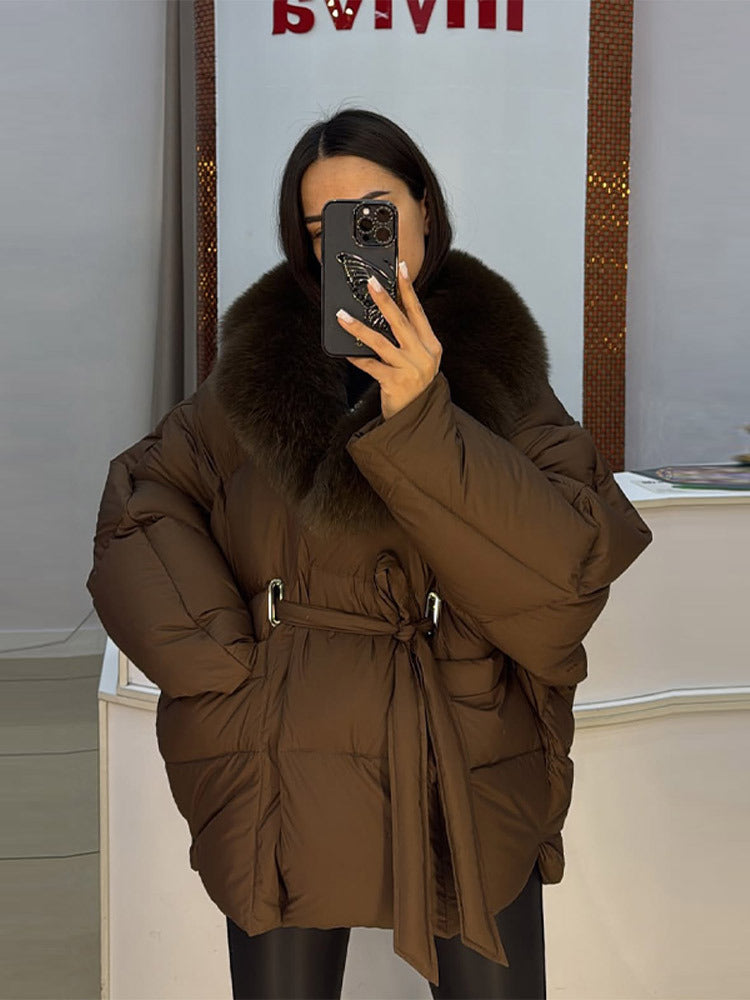 2025 Autumn And Winter Women's Clothing Fashionable Thick Cotton Clothes Long Sleeves Removable Collar Splicing Coat Woman
