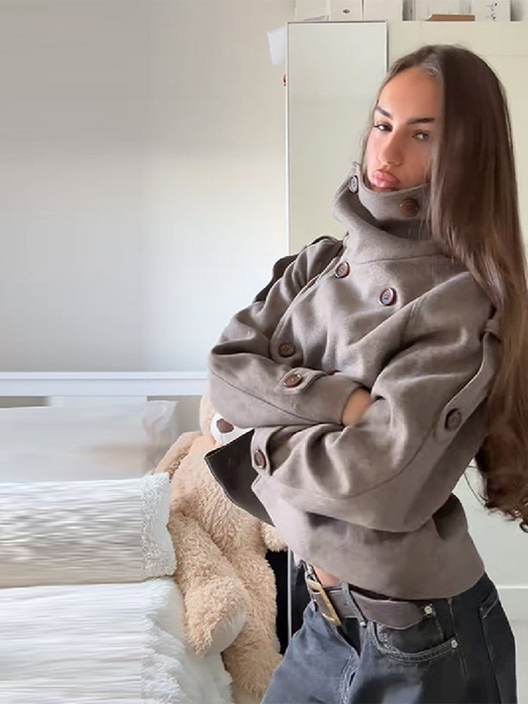 2025 Autumn And Winter Women's Fashion Commuting Collar Collar Buckle Short Coat Woman