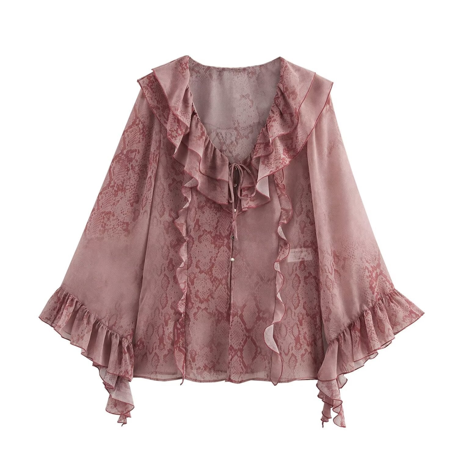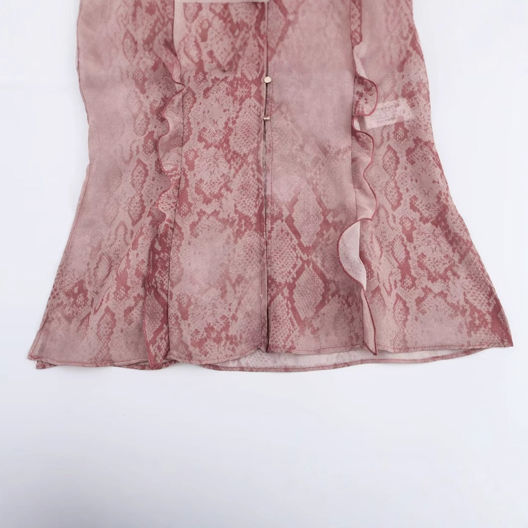 2025 Spring/Summer Blouse With V-Neck Folding Animal Pattern Printed Women's Long-Sleeved Shirt
