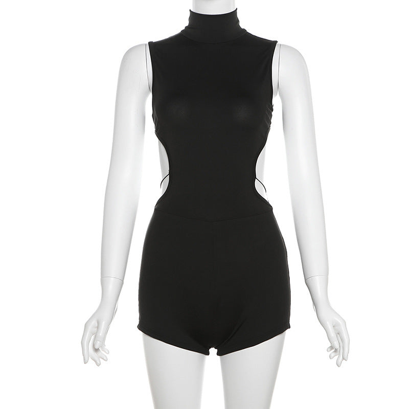 2025 Summer Fashion Trend Women's New Round Collar Hollow Repair Body Pick-Up Full-Body Jump-Up Band Pants