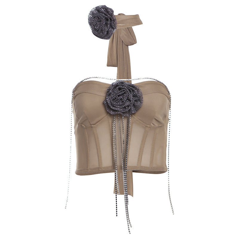 2025 Summer New Sexy Chest Umbilled Vest High-Waisted Hip-Up Mesh Skirt