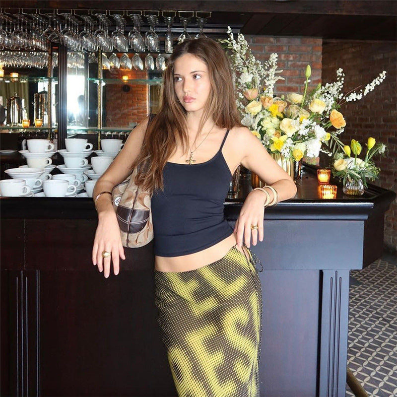 2025 Summer New Women's Fashion Trend Letter Print Pixel Wind Pocket Hip Skirt