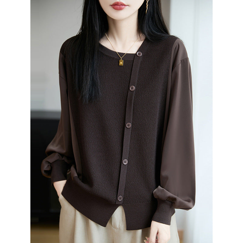 Ice Silk Cardigan Small Loose Thin Long Sleeve Sunscreen Shirt Women's Summer Design Sense Back Open Fork Shirt