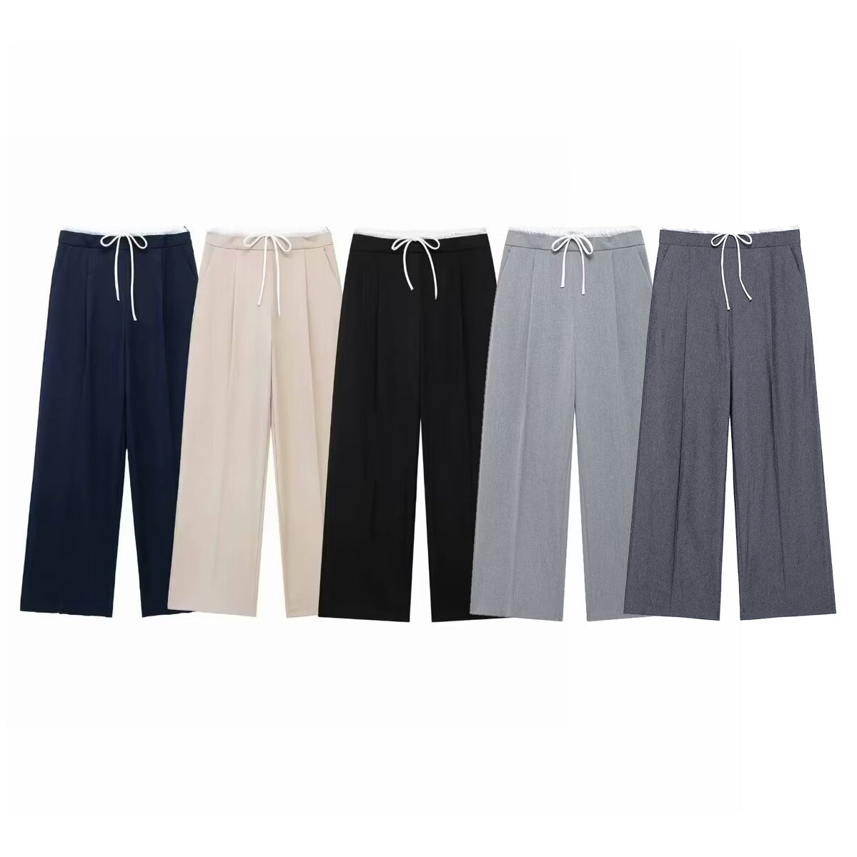 Commuter Leisure Wide-Legged Pants 2025 Spring Bump Color Double Belt High-Waisted Trousers Women