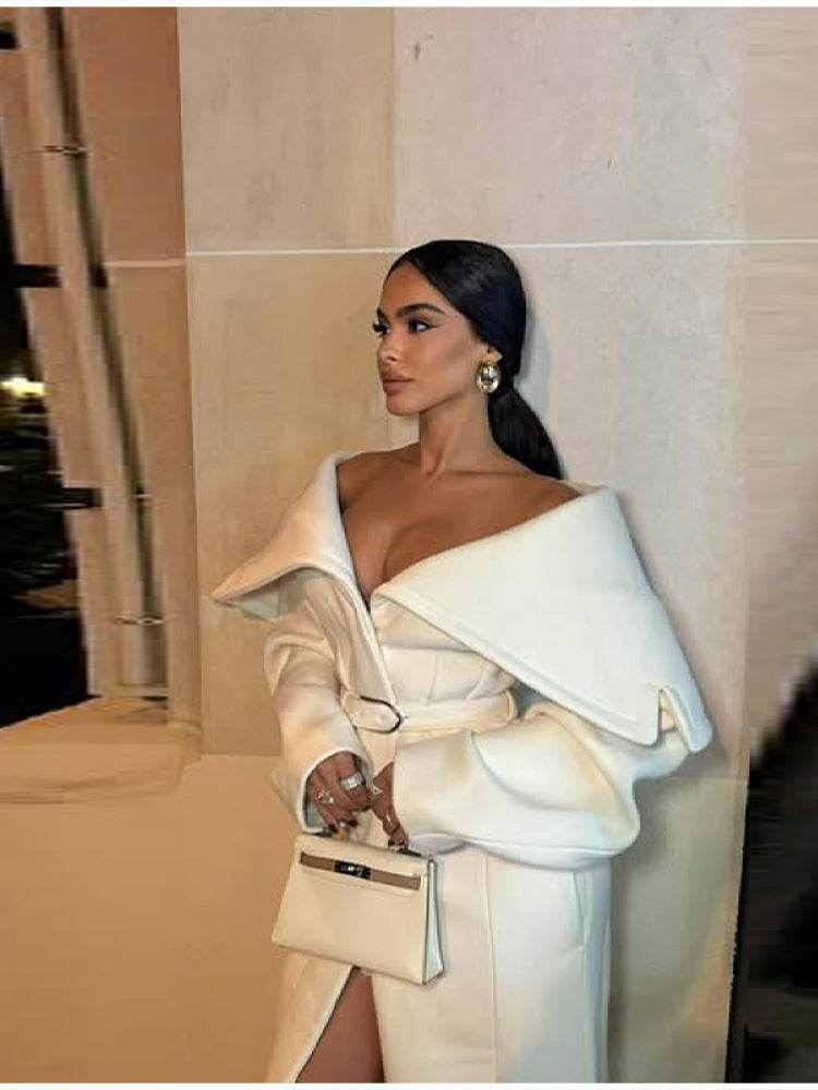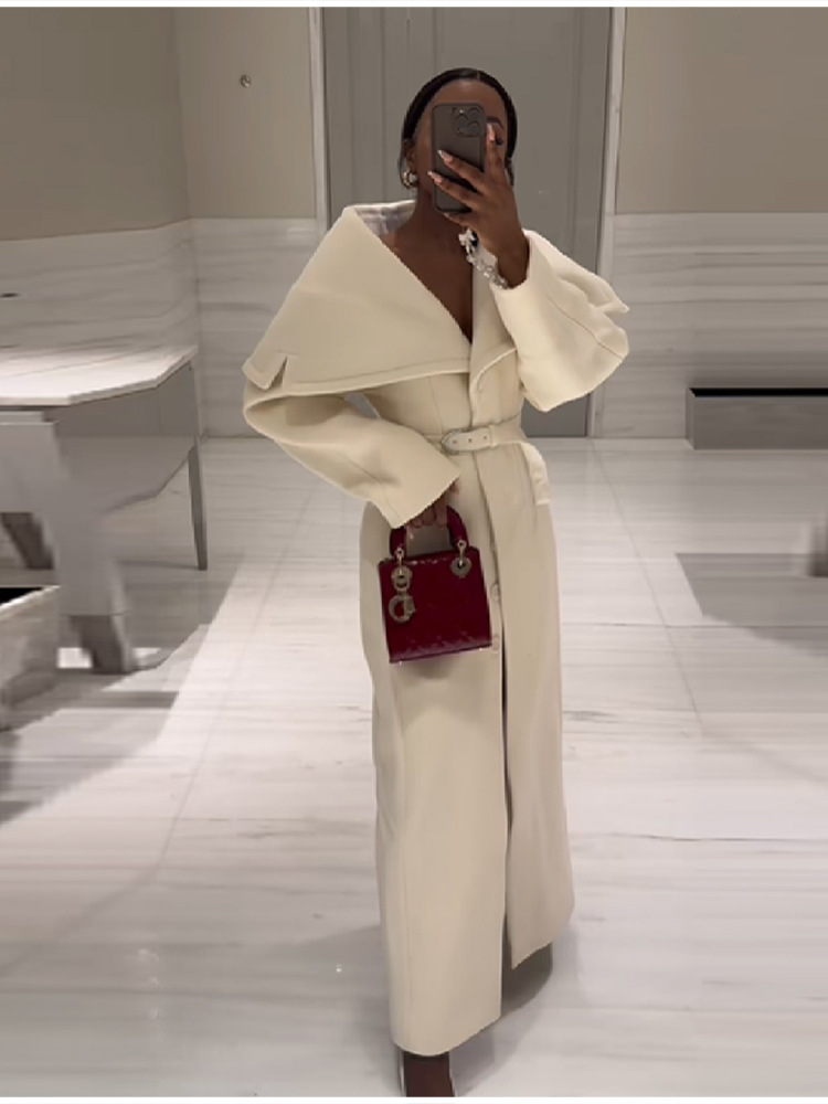 Elegance Elegant Solid Color Big Collar Long Hair Coat 2025 Autumn And Winter New Women's Clothing