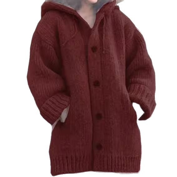 Mid- And Winter 2025 New Long Cashmeet Cardigan Women's Long Hooded Knitted Coat Over The Knee Wool Coat