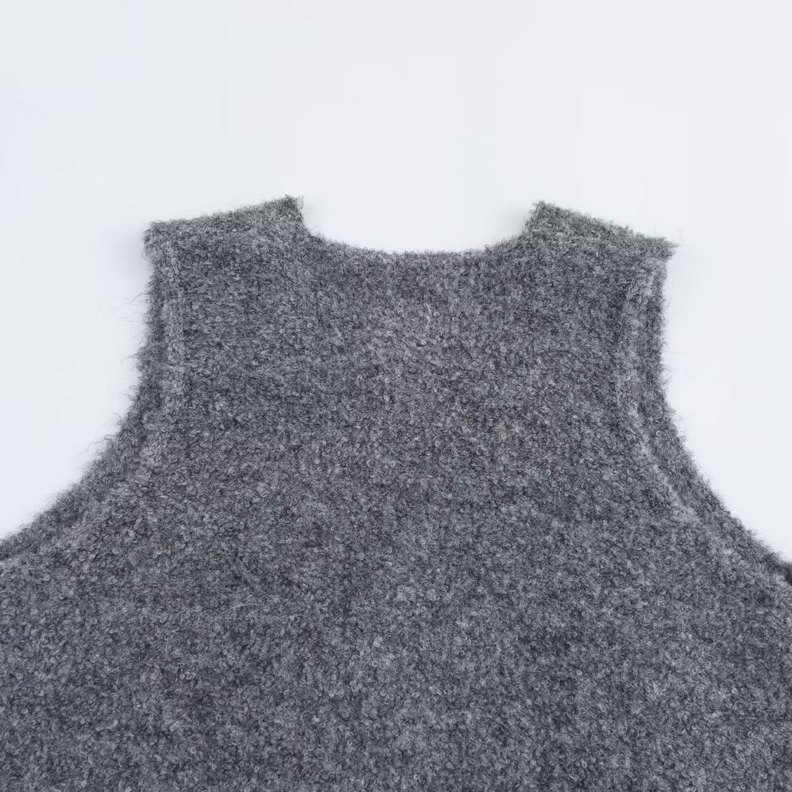 Round Collar Double Zipper Knitted Vest Vest 2025 Spring Loose Short Sweater Cardigan Woman