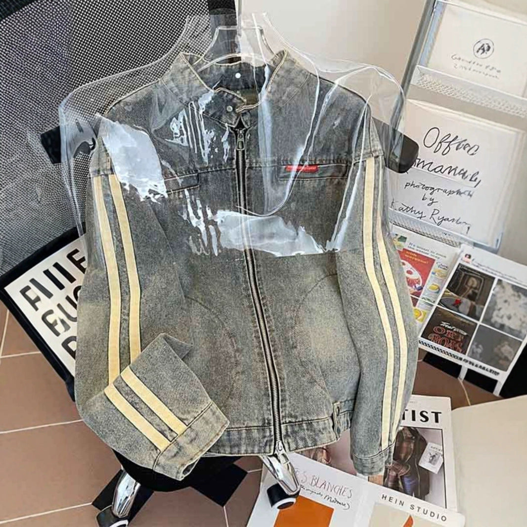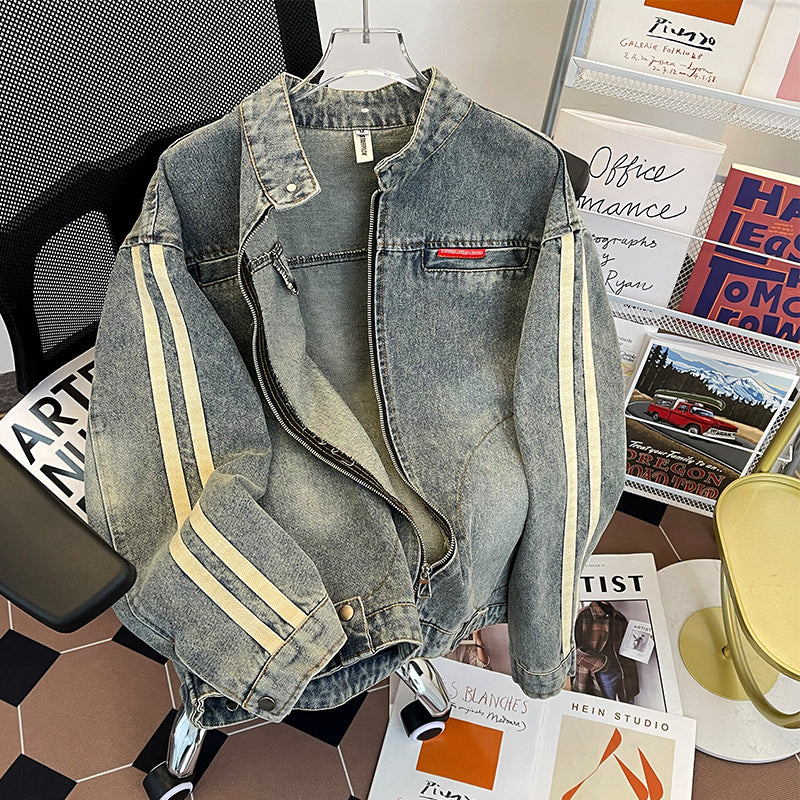 Spring And Autumn Lead Cowboy Coat Men Do Old Water Shuffle Casual Tide Oversize Retro Zipper Jacket