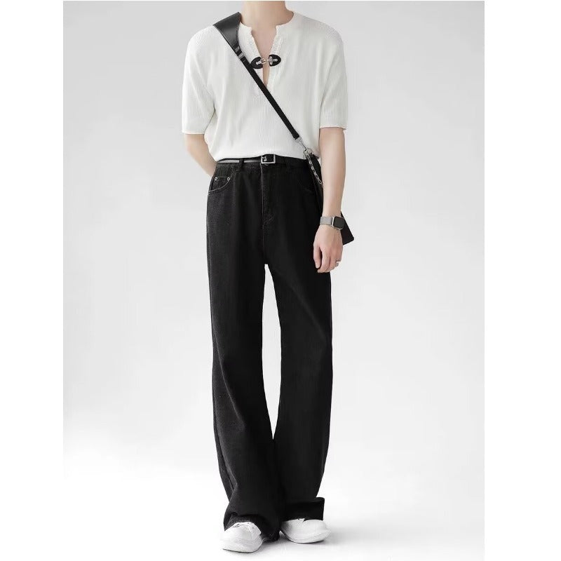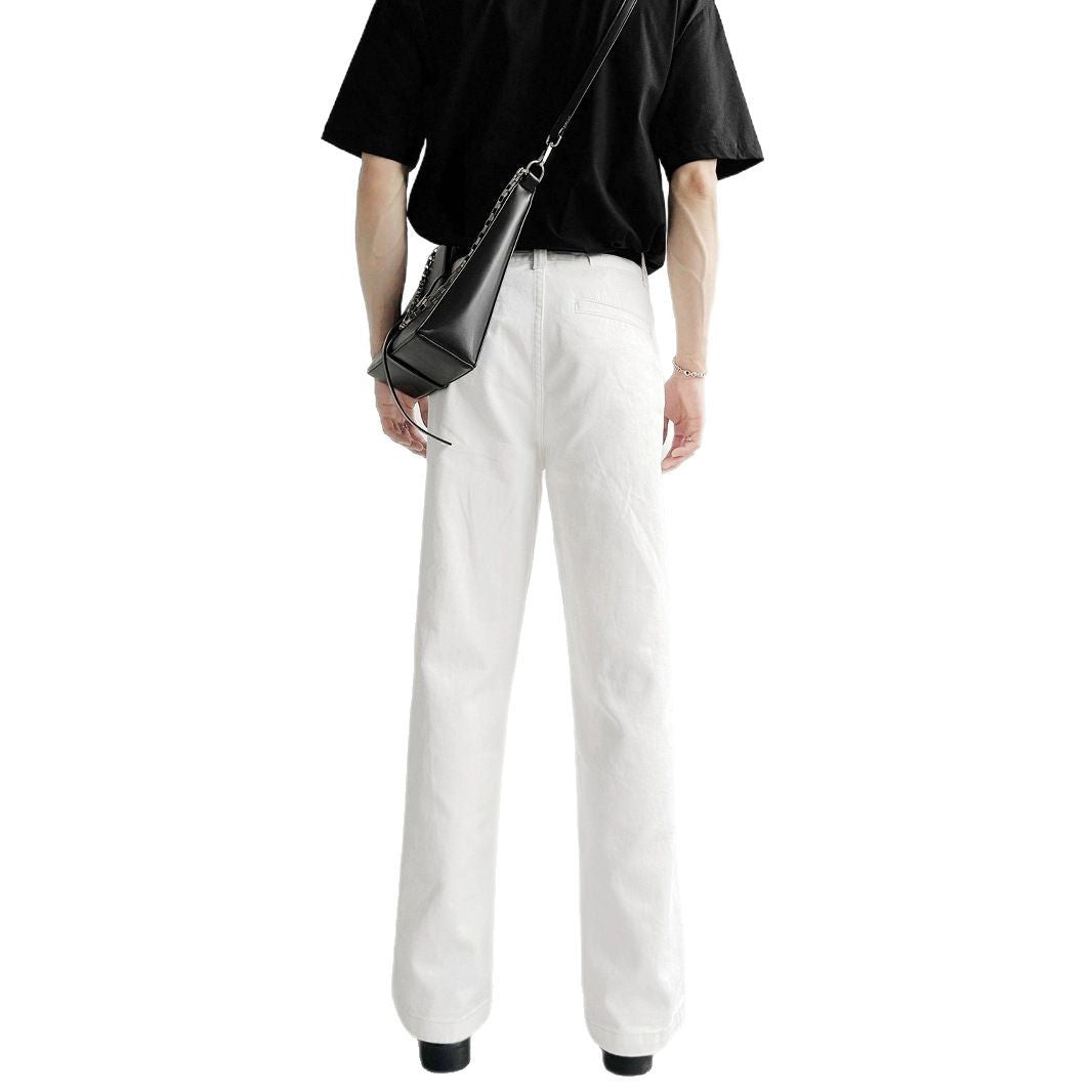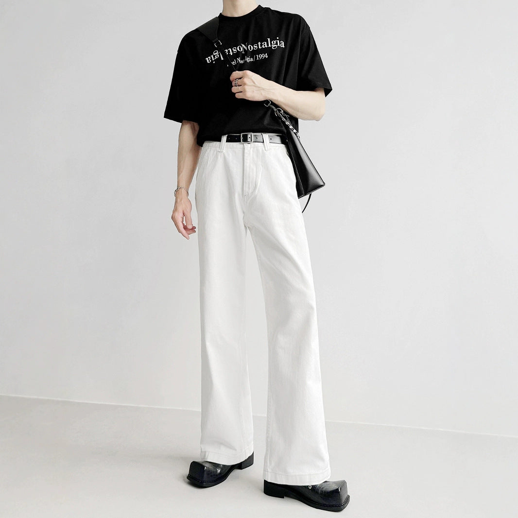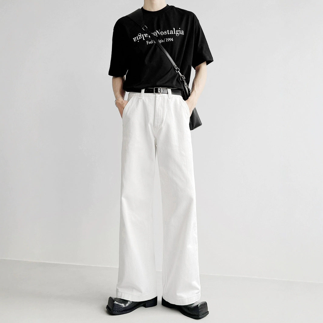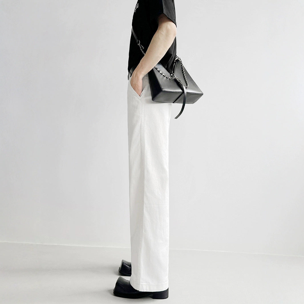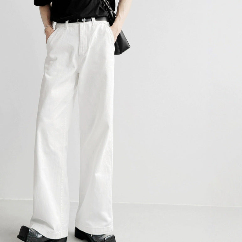Superior Sensing White Jeans Men's And Women's Loose Straight Drags Broad Legged Couple Casual Cleanfit Pants