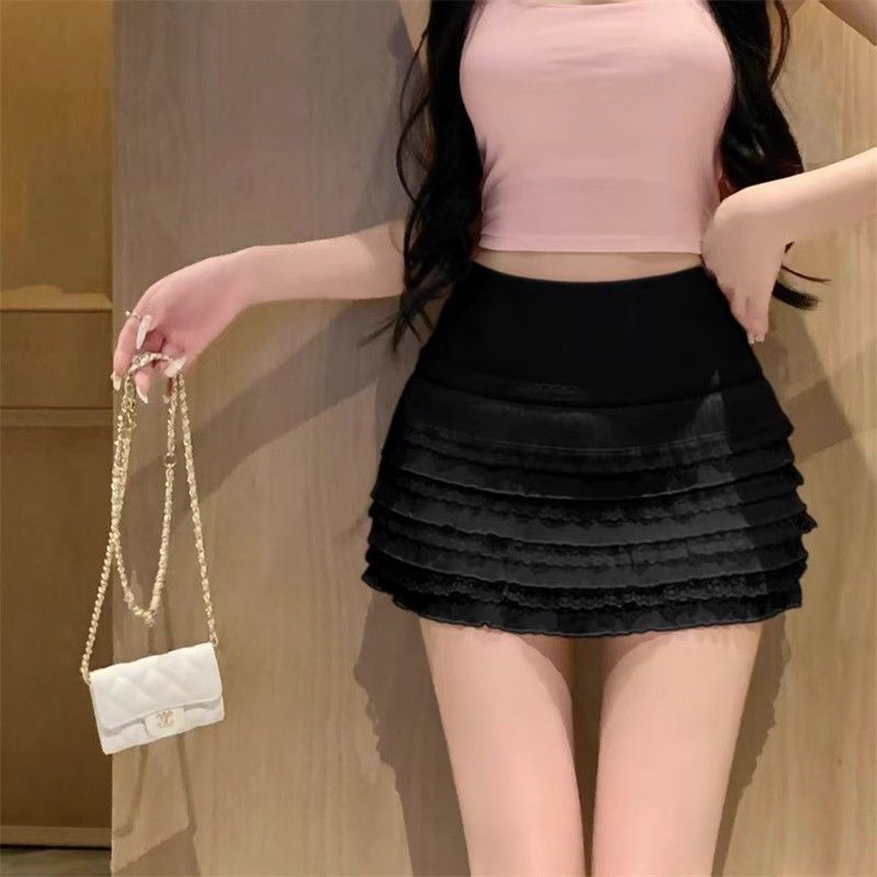 Lace Ultra-Short Skirt Women High Waist Small Skirt Summer Skirt Mini Hundred Folds Ponmp Skirt Skirt 2025 New