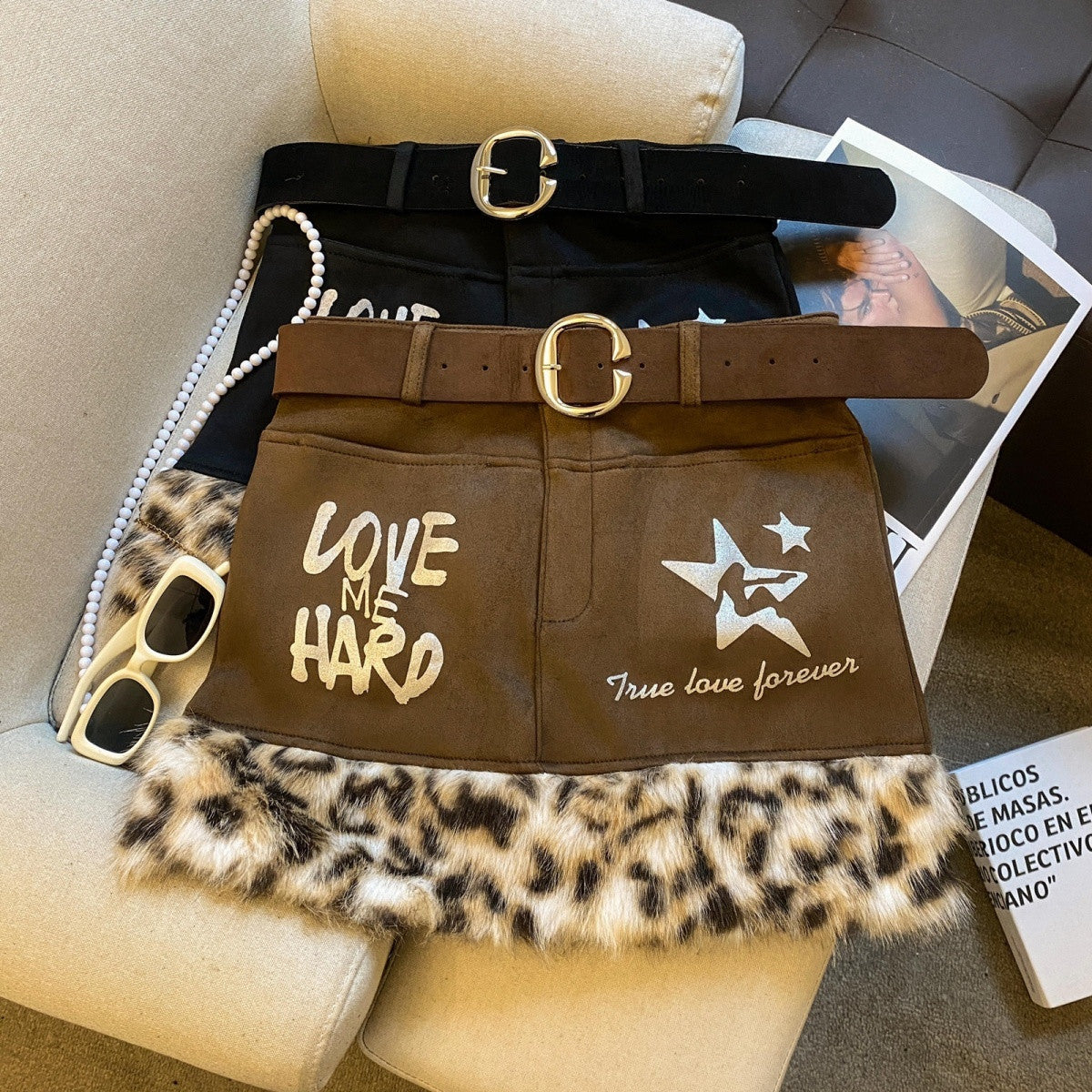 Short Skirt Women Spring And Autumn Wick Velvet Skirt Brown Large Size Fat Mm High-Waist College Windy Skirt Thin